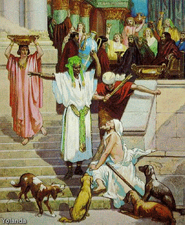 Lc. 16, 19-31 Este domingo Jesus, no Evangelho, continua a falar-nos da questão dos bens e da riqueza e de como muitos ricos são avarentos e apegados aos bens/dinheiro, não se importando com os que mendigam à sua porta ou passam mal à sua volta. A riqueza não é um mal em si se, os que a possuem, são capazes de repartir o que têm com os que passam necessidade. Quando Jesus conta a Parábola do rico avarento e do pobre Lázaro, que jazia à sua porta, sem poder saciar-se do que caía da mesa do rico, é para chamar a atenção dos que, tendo muitos bens, desprezam os pobres. A esses o que os espera é o tormento eterno, longe de Deus.